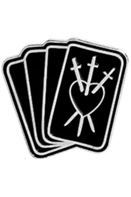 Three of Swords Tarot Cards gothic pin brooch measures approx. 2.5cm x 2.6cm and fastens with lapel pin style metal clutch back.