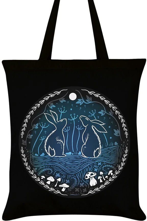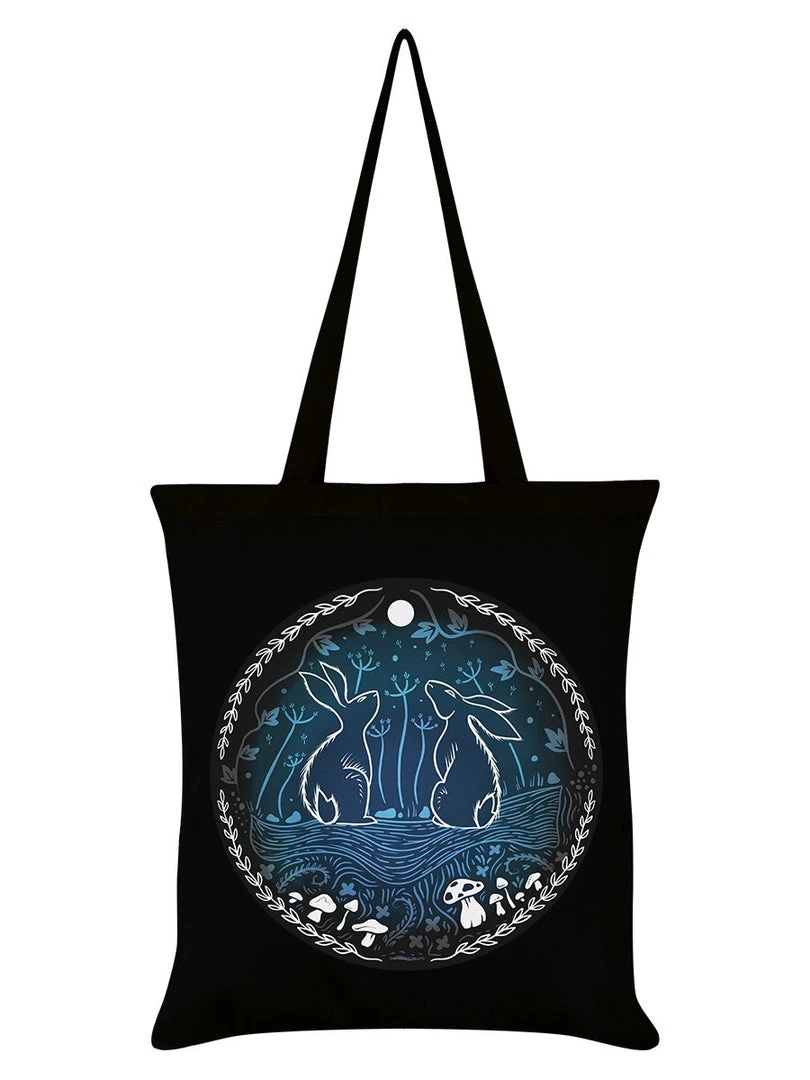 Moonlit Tryst Black Tote Bag.