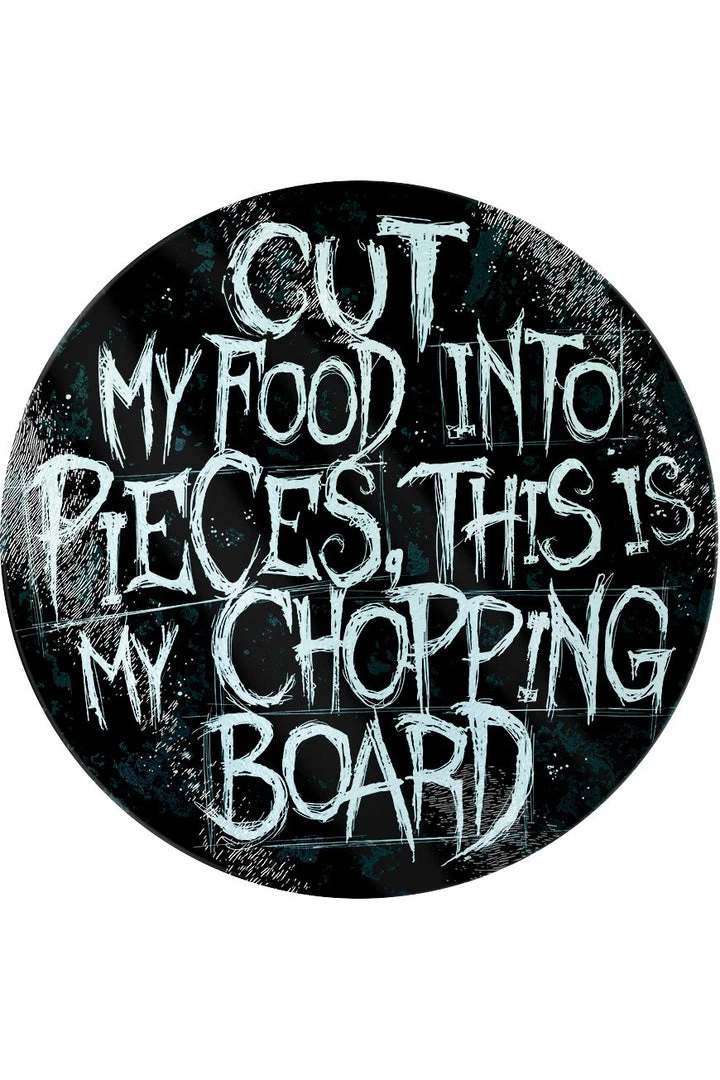 Cut My Food Into Pieces Circular Glass Chopping Board.