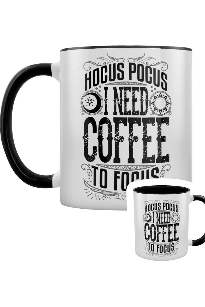 Hocus Pocus I Need Coffee To Focus Black Inner 2-Tone Mug.
