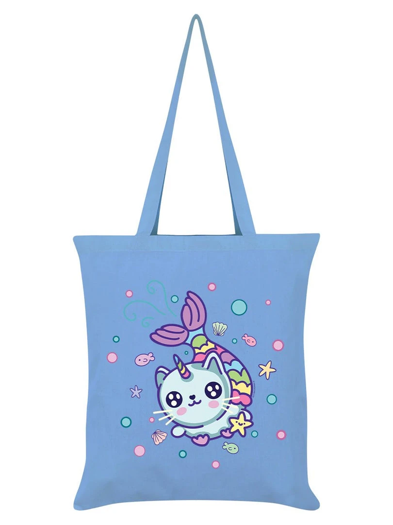 Kawaii Mermaid Kitten Sky Blue Tote Bag.
