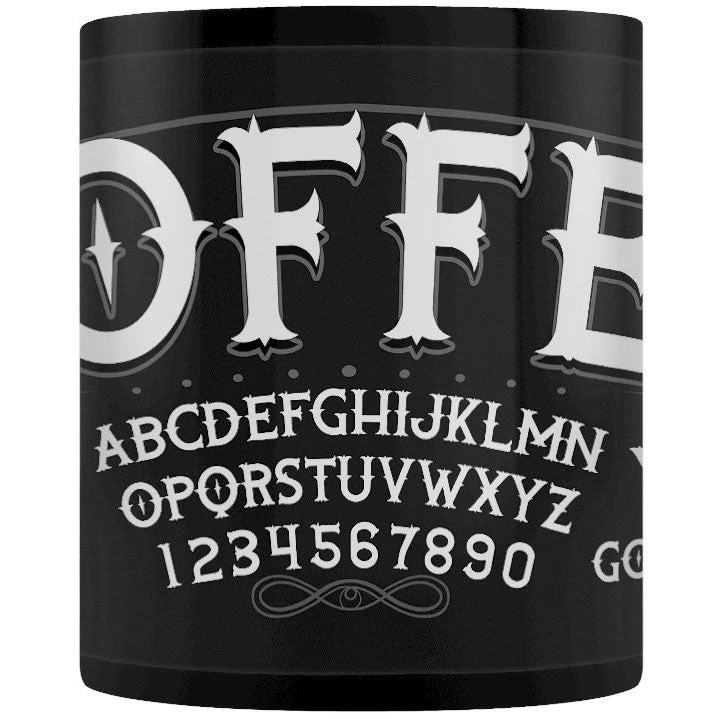 A new take on the classic Ouiji Board design. Converted to Coffee for a spiritualistic approach. Let people know ‘Not to Mess with Your Cup’. The Ouiji also known as spirit board or talking board, is a flat board marked with the letters of the alphabet, the numbers 0–9, the words “yes”, “no”, occasionally hello” and “goodbye”, along with various symbols and graphics.