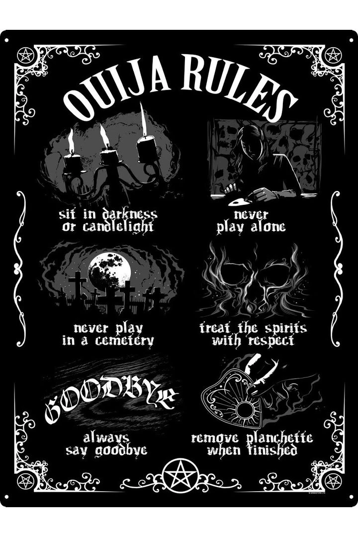 Ouija Board Rules Tin Sign.