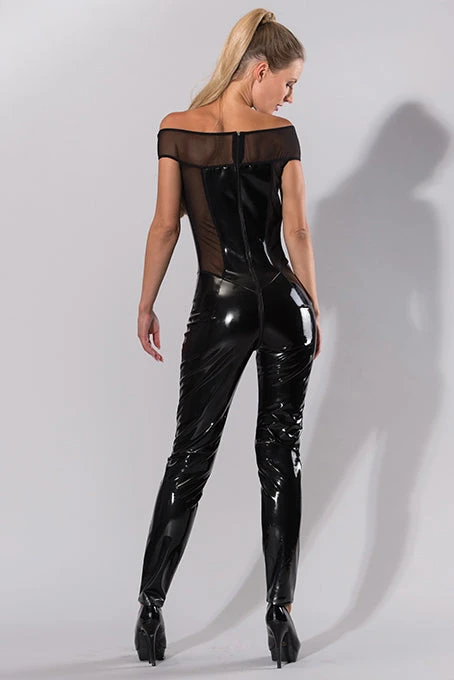 The offshoulder design of this Datex catsuit and the transparent fabric at the front ensure a sexy look, while the surprise is at the backside: the zipper can open from the top all the way to the crotch!