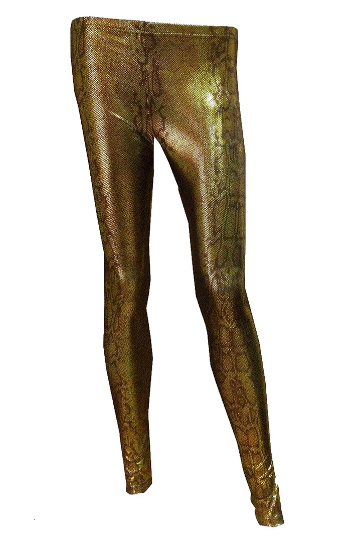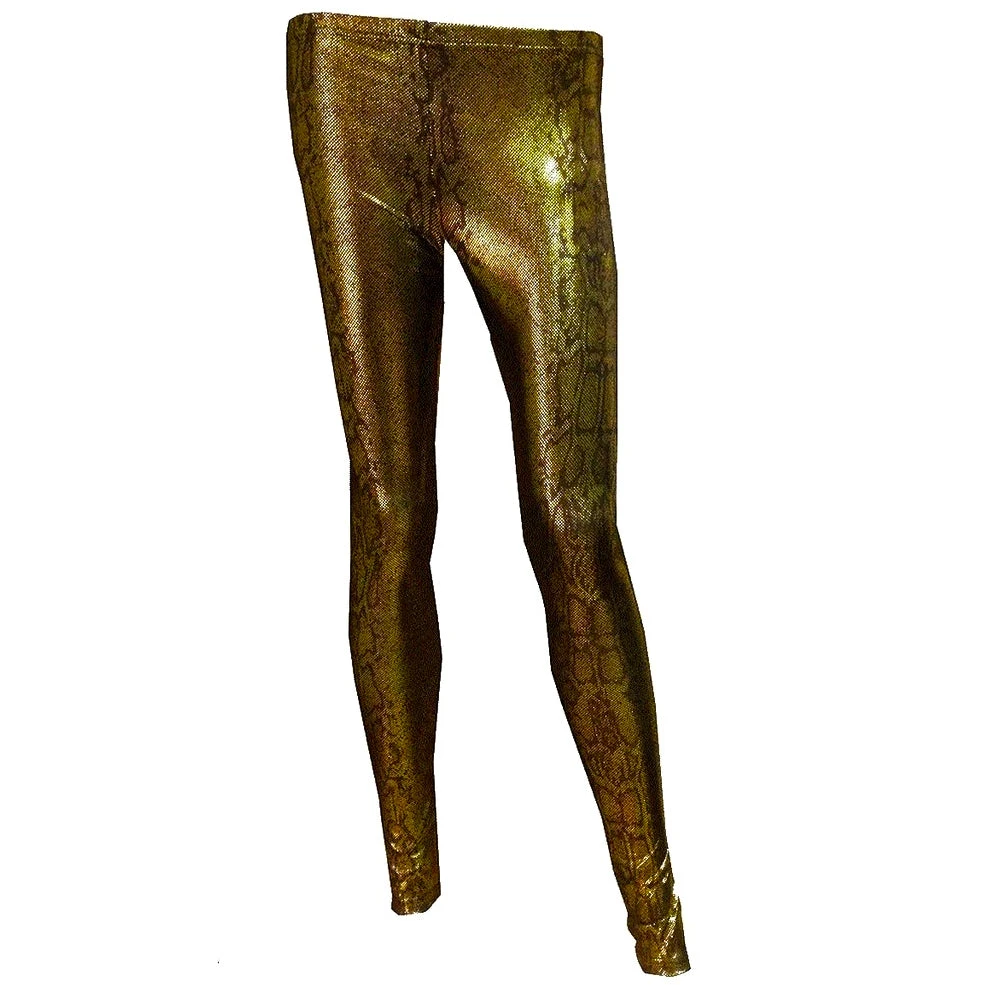 Ladies golden snake print leggings with a shimmery pattern from Hearts and Roses London.