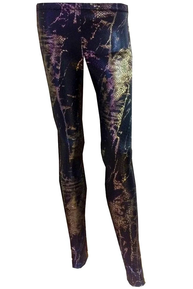 Ladies brown Marina Golden Print snake skin effect print leggings with a mottled pythonesque pattern from Hearts and Roses London.