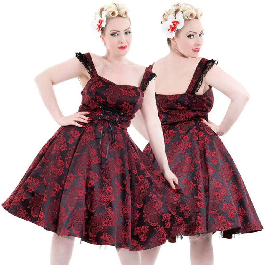Ready to conquer an Empire? The Empress of Byzantium would certainly agree she’s ready to reign supreme in H&R London’s amazingly popular Red Marie Antoinette Gothic Long Dress! The beautifully made Red Marie Antoinette Gothic Long Dress will have you realising your dreams of royalty. A strappy swing dress with a strikingly bold brocade print, the dress has delicate lace on the straps and a corset-tie waist to tighten or loosen for a perfect fit. The sweetheart neckline enhances the bust line and the built-in cotton lined petticoat really makes this dress extra special. The Dress hits at the knee, and zips up the side.