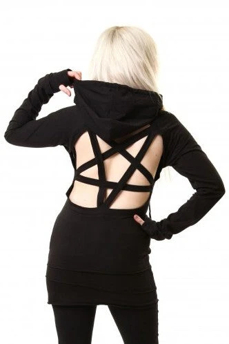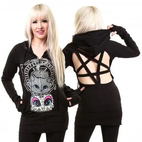 Gothic hoodie with Pentagram Back Straps. Poizen Industries – Cupcake Cult Yes No Cat Hood.