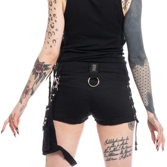 Poizen Industries Vixxsin Naoko Shorts – Black Cotton Canvas Gothic Hotpants with side lacing and Holster style Side Pocket.