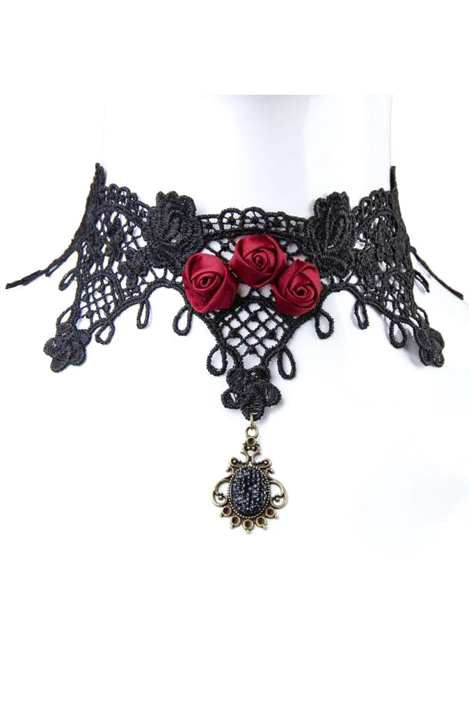 Black Lace Red Roses Gothic Choker.