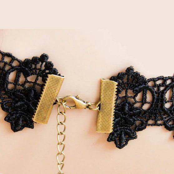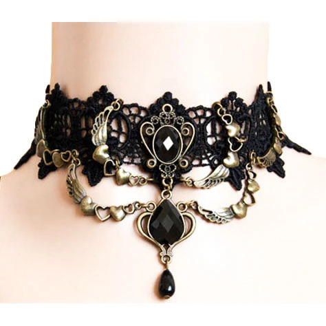 Black Lace Steampunk Hearts and Winged Detail Choker.