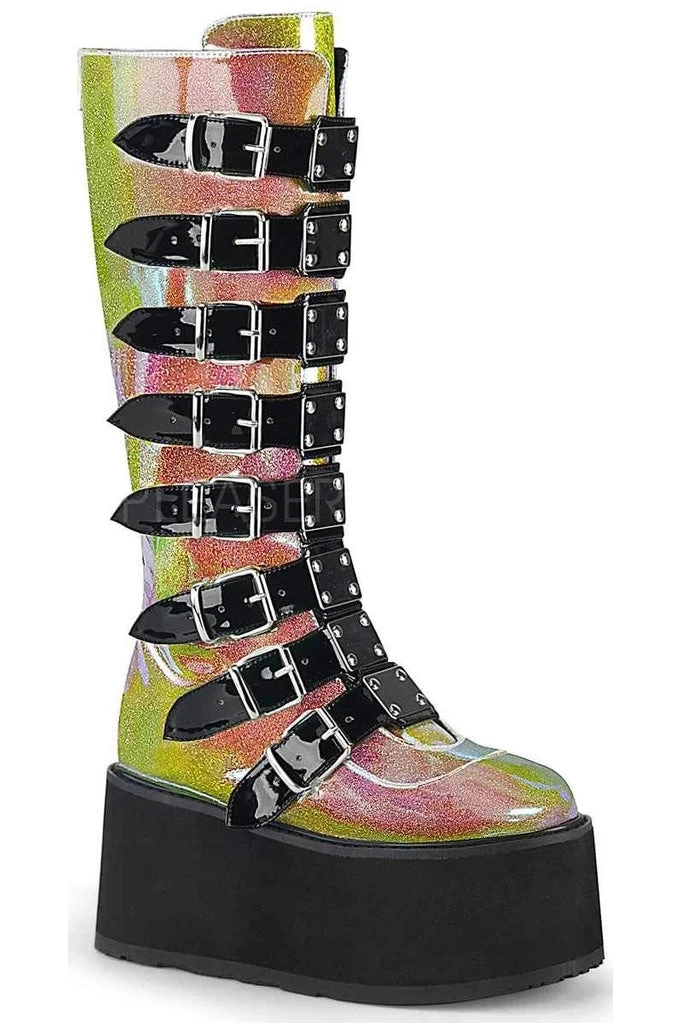 Demonia Ladies Pink Shifting Glitter Vegan Leather DAMNED-318 Boots.