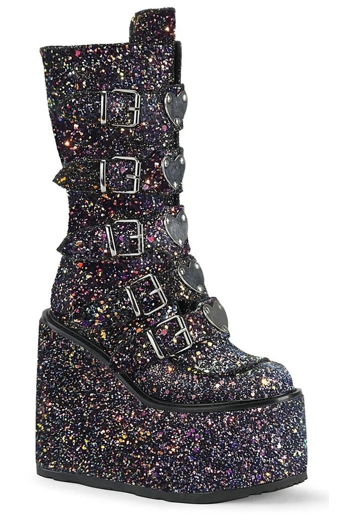 Demonia Ladies Black Multi Coloured Glitter SWING-230G Boots.