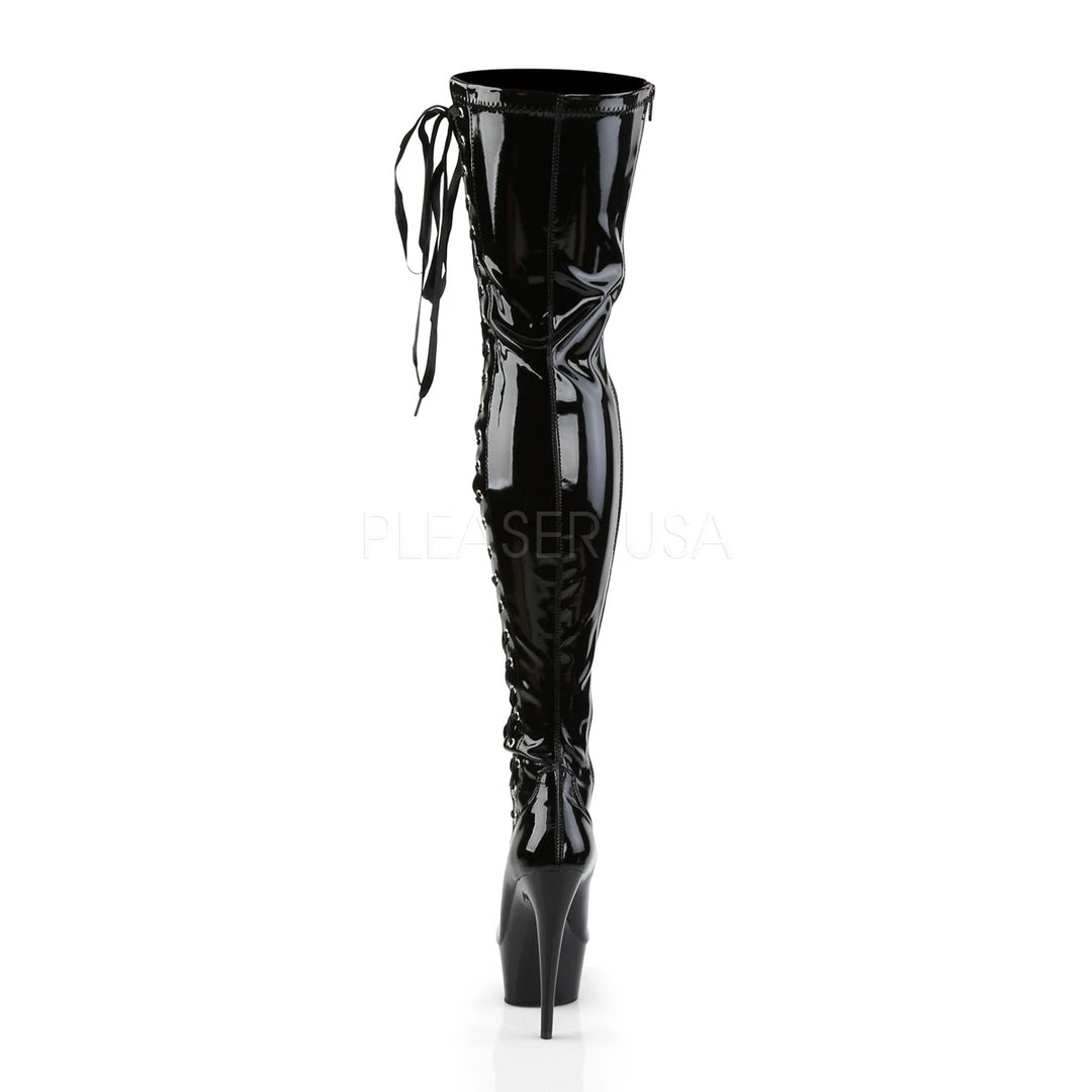 Pleaser Black Stretch Patent PVC DELIGHT-3050 Boots.