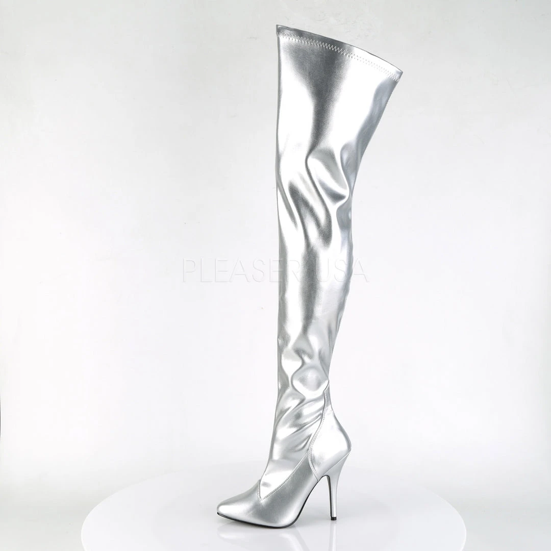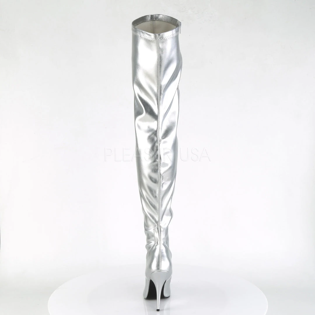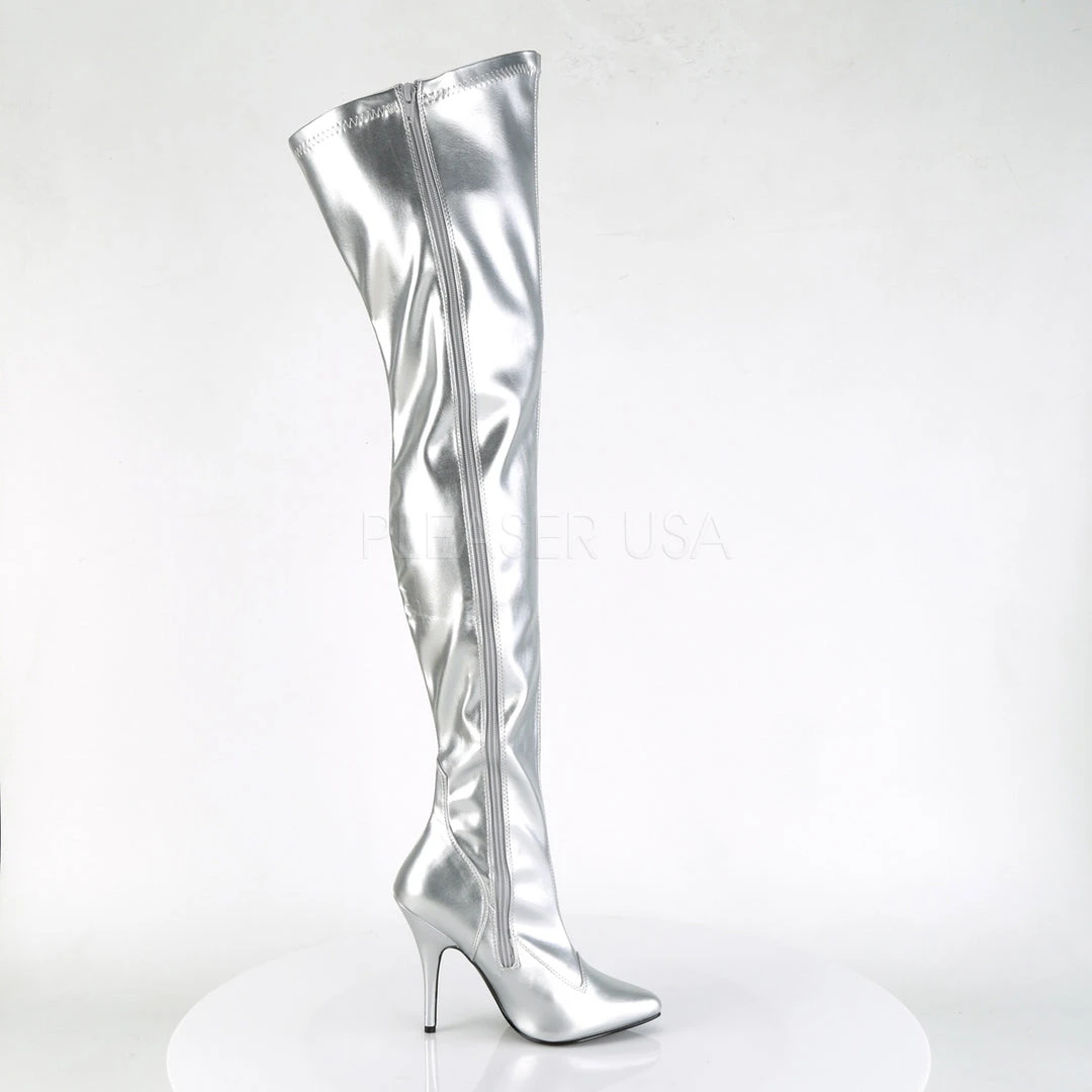 Pleaser Silver Faux Leather SEDUCE-3000 Boots.