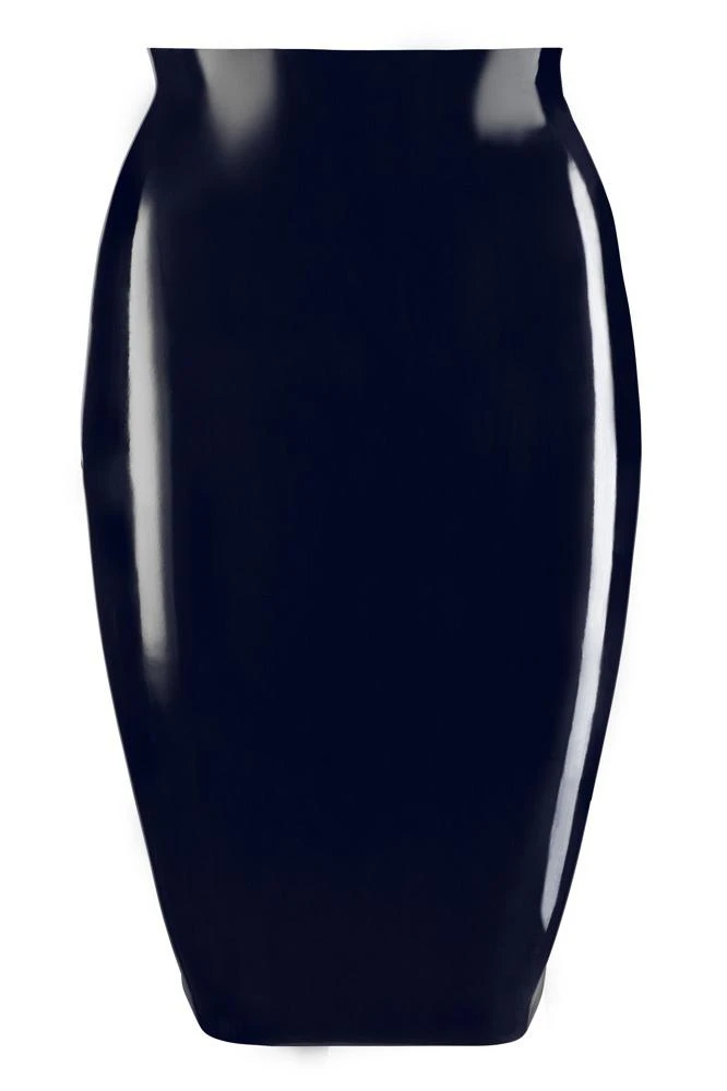 Can be combined in many ways! Knee-length and waist-high latex skirt that is narrowly cut. Flat dipped. Black. Thickness 0.35 mm.