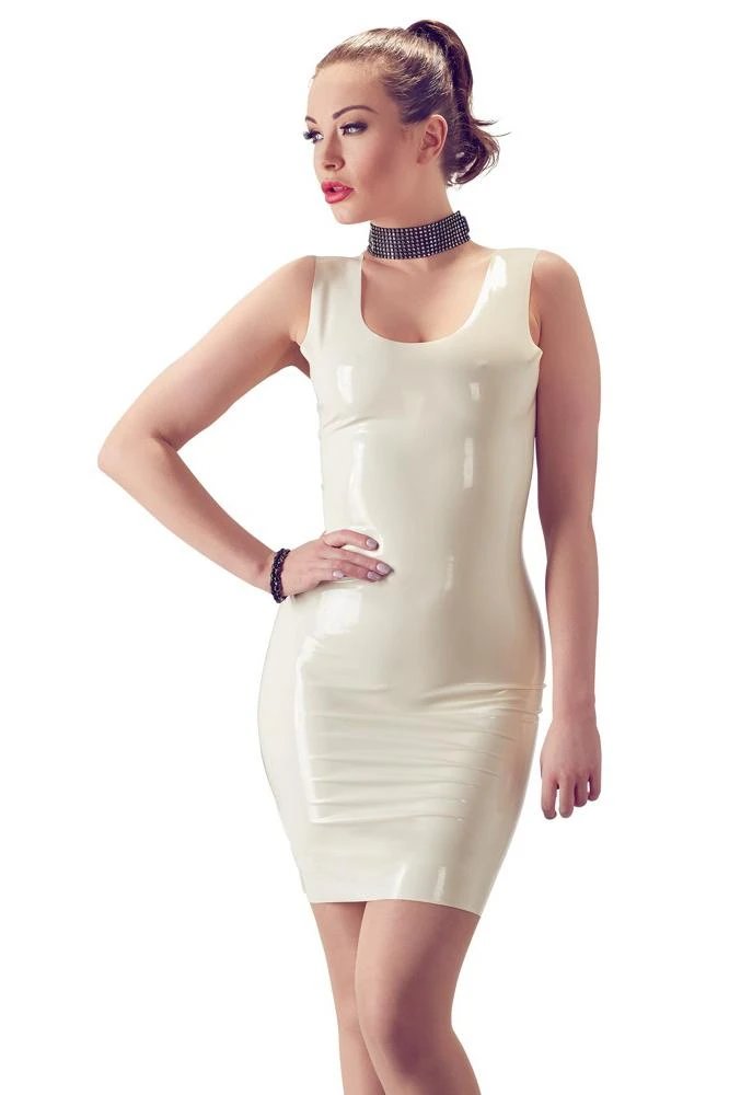 A true fetish classic! Tight-fitting mini dress made of natural latex. In a sensual creamy white and perfect for curvy stars. Natural latex.