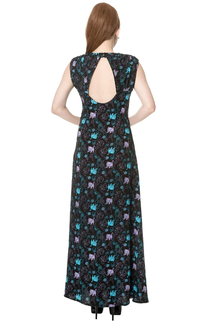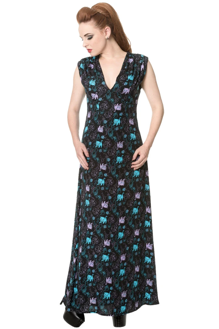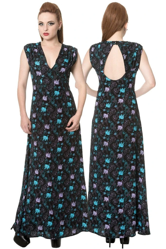 Banned Gothic Maxi Dress, Daring Doodle Cat Maxi Dress.