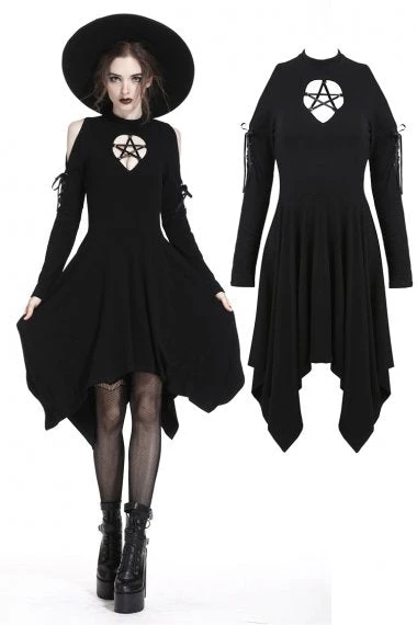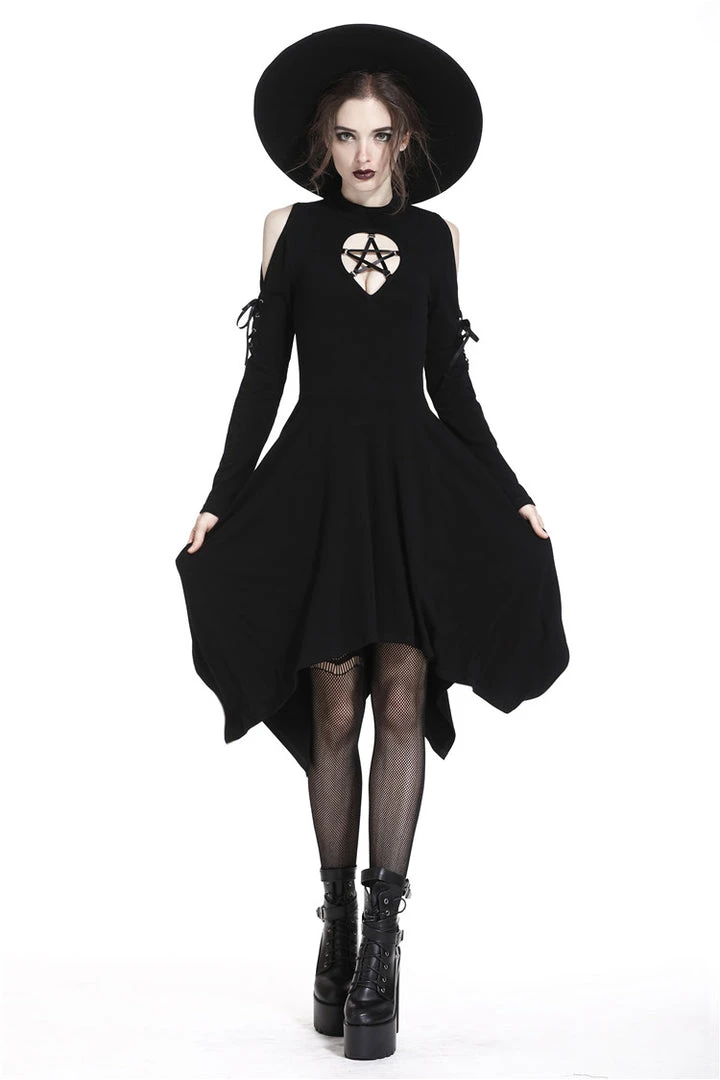 Punk hollow star chest dress with sexy ribbon sleeves.