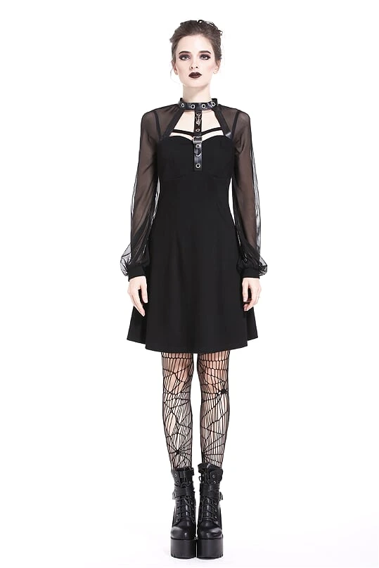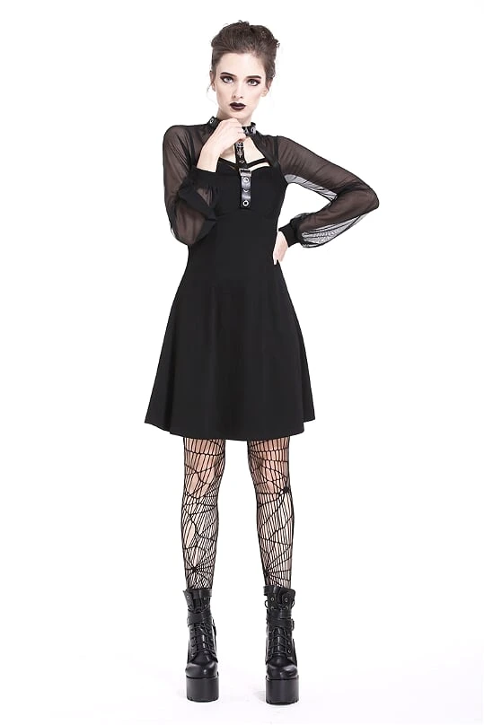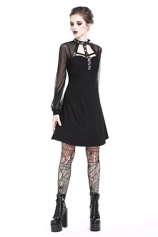 Punk mesh sleeve halter dress.