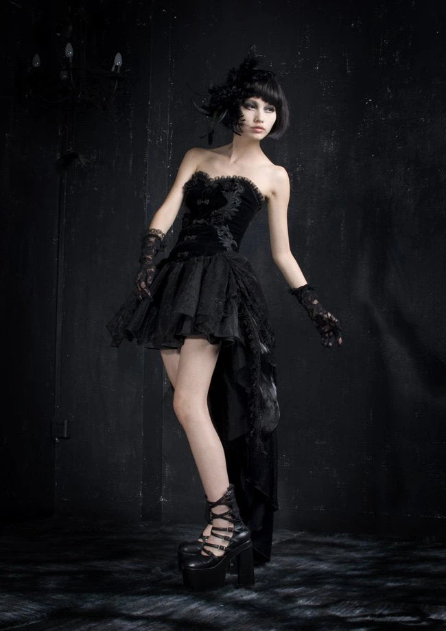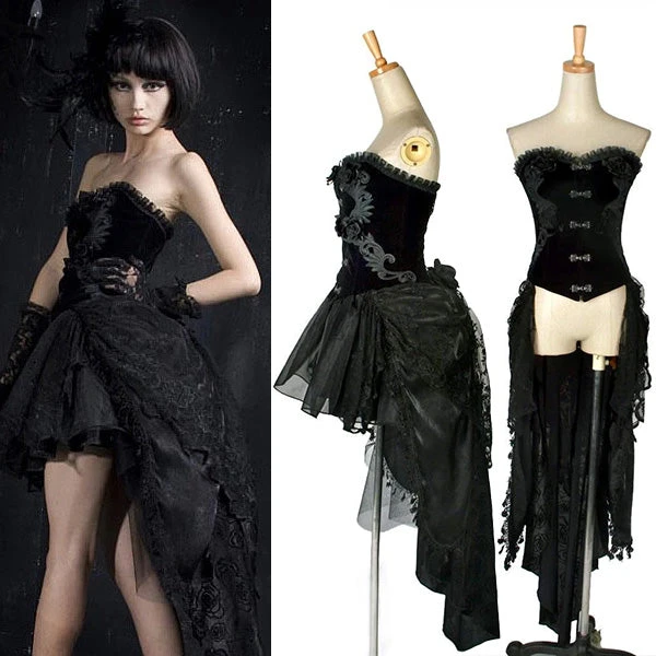 Punk Rave Gothic Velveteen Corset Top Dress with matching Tutu.