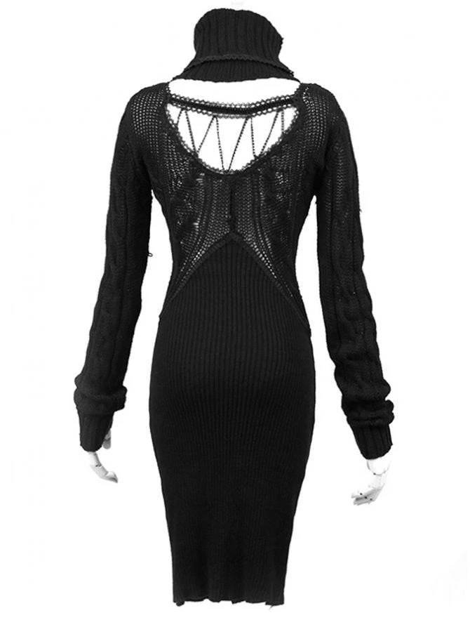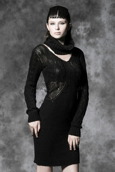 This fabulous Lamentation stretch jumper dress from Punk Rave has accents of lace detailing at the front and lace chain style details at the back. The top and sleeves is slightly see through in a flattering upside down ‘V’ configuration while the bottom is in a more close knit which is not quite so see through.