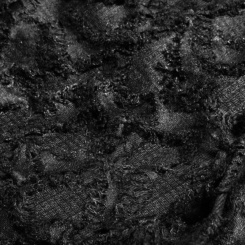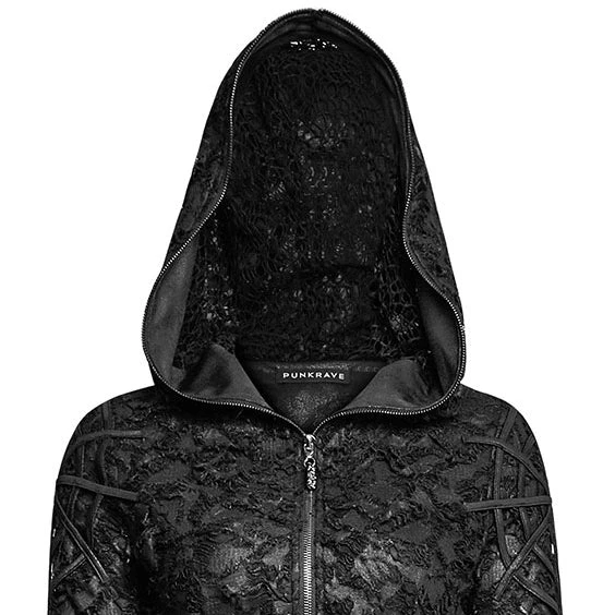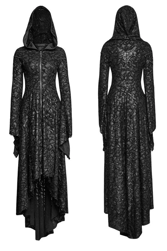 Stunning Dress from Punk Rave in a distressed style fabric with a slightly metallic highlighting to it. 2 Way front zip and slightly pointed cobweb lined hood.