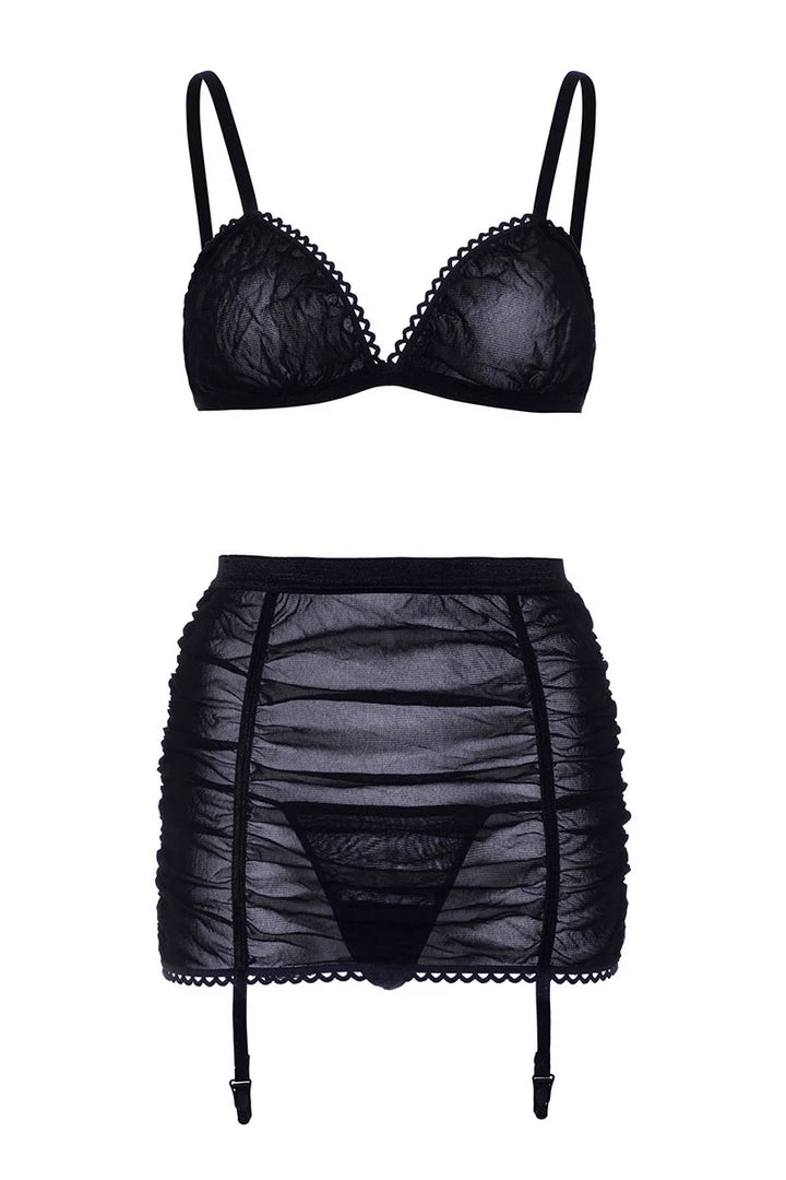 Leg Avenue Mesh Bra Top and Garter Skirt.