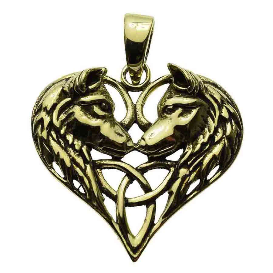 Pendant Bronze Wolves Heart By Lisa Parker. Size 2.5cm.