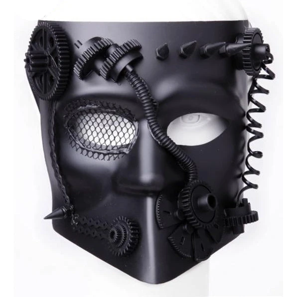 This venetian mask is composed of a body made of rigid material, accompanied by a grille covering one eye, also decorated with gears and spikes. This genuine mask will not go unnoticed at your next party.