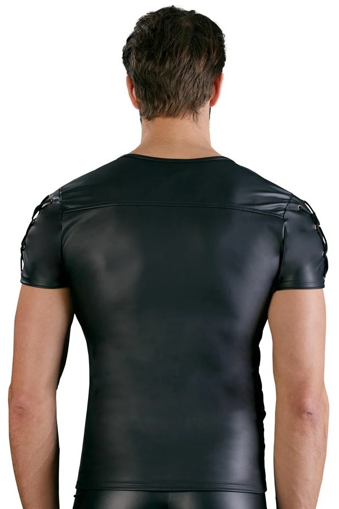 Cool look and high wearing comfort! Straight cut shirt in a delicate, black matte look with a short brass zip at the front. With D-rings on the shoulders and striking lacing on the sleeves. Wonderfully stretchy for a perfect fit.