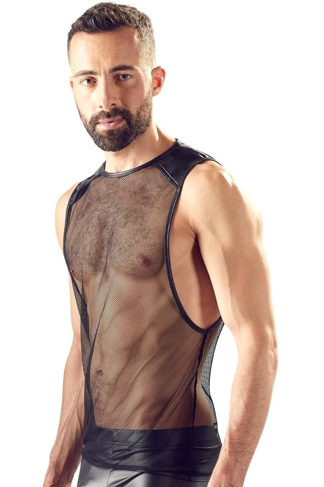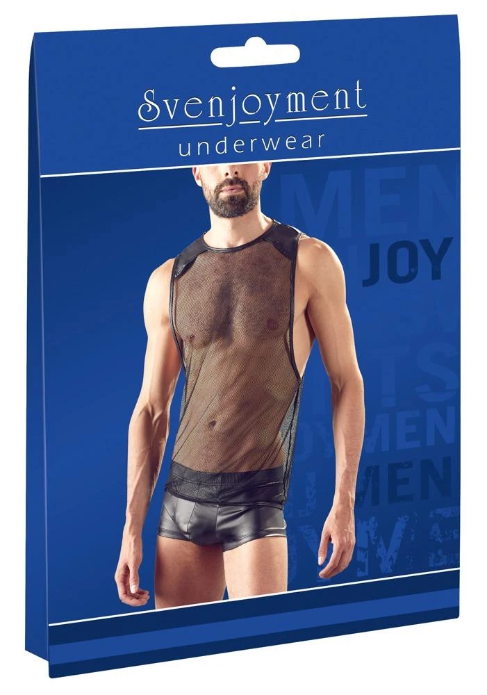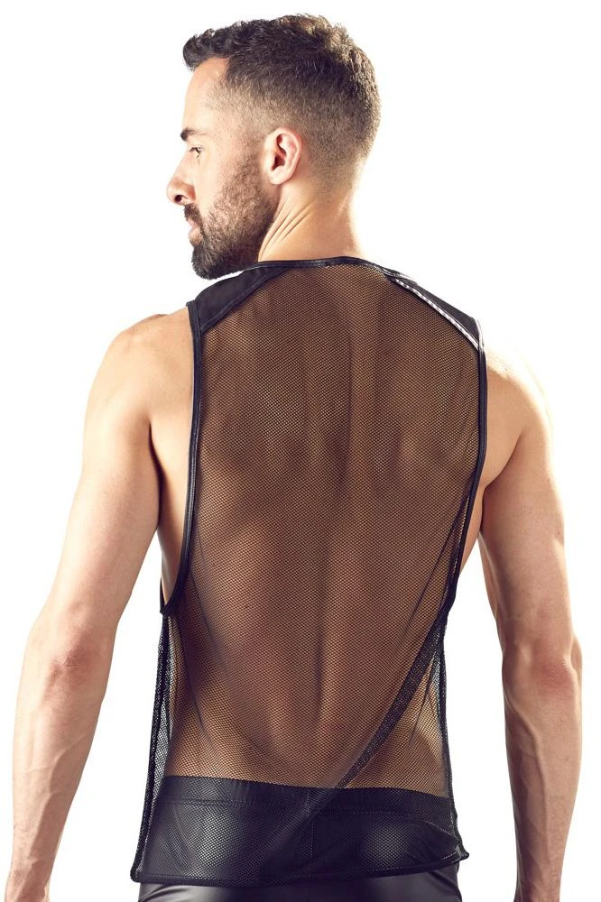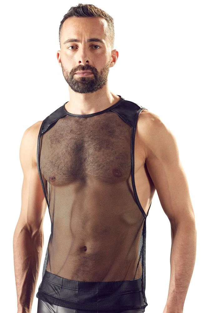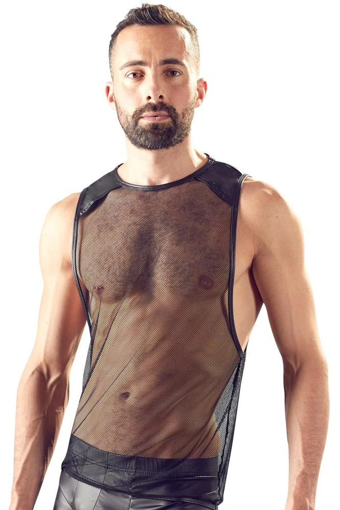 Perfect for dark parties! Net shirt with a loose fit, large holes for the arms and matte look inserts on the shoulders. The shirt designed by Orion also has narrow and stitched seams.