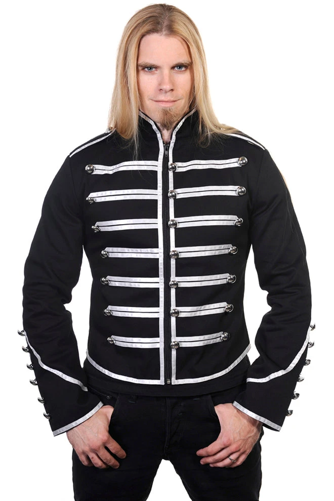 Banned Gothic Jacket. Mens Military Drummer Jacket in Black with Silver Trim.