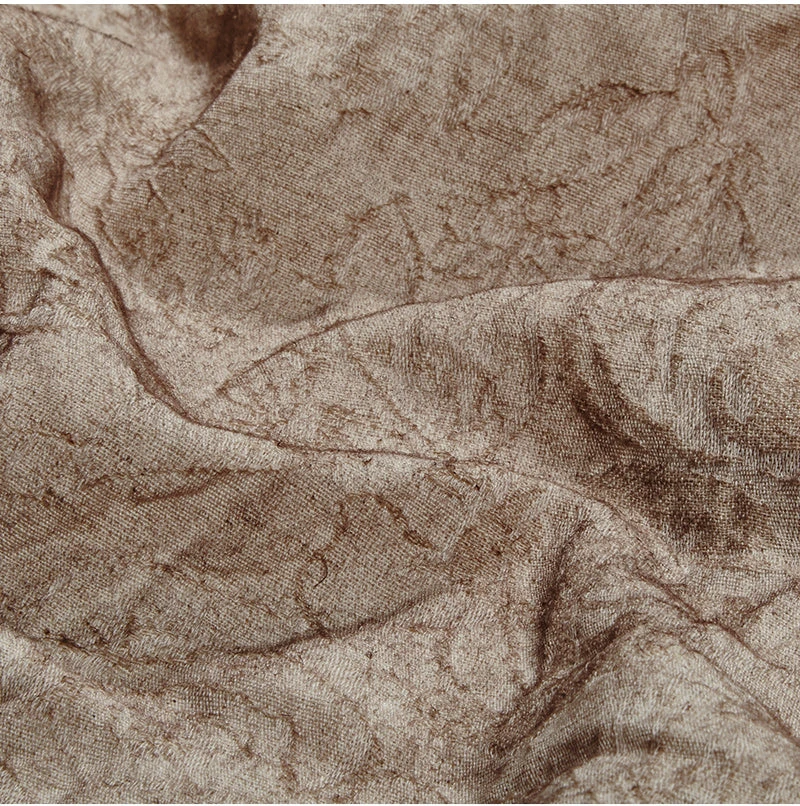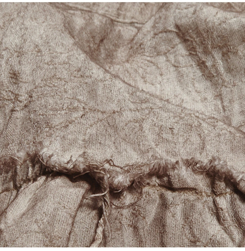 Note the round embossed silver Gothic style buttons. Shirt is embroidered with flowers pattern (see close-up photos). White cream color fabric has brown beige ombre wash and aged grunge finishing to create Post Apocalyptic Gothic / Steampunk style.