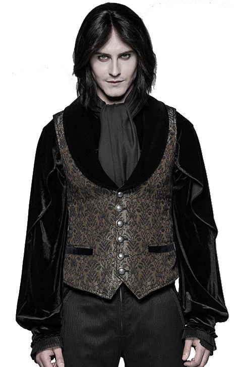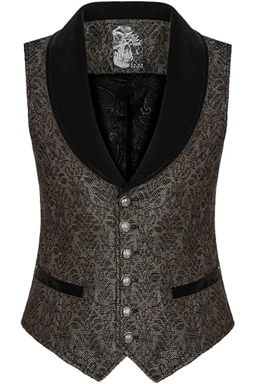 Punk Rave Dark Gold Jacquard Gentleman Vest.