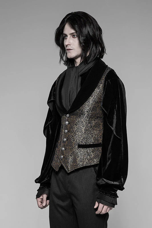 Punk Rave WY-938 Gothic Dark Gold Jacquard Vest Velveteen Floral Pattern Elegant Gentleman Vest.