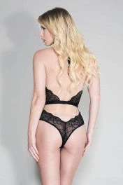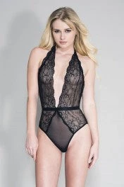 Halter lace teddy with waistband and a cheeky back.