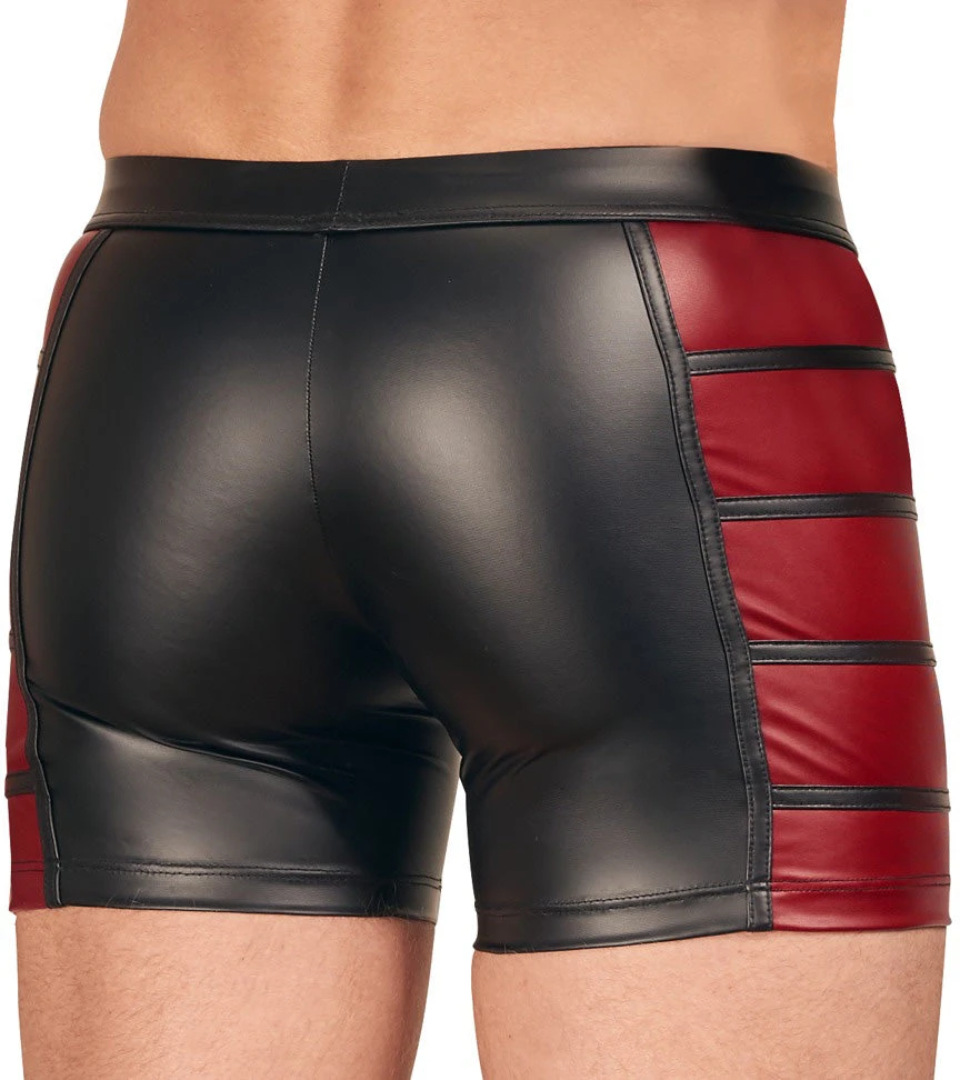 An exclusive design in a terrific colour scheme! Black pants made out of trendy matte look material with red inserts at either side. There is a practical, padded zip at the front that can be unzipped quickly for erotic fun. Wonderfully stretchy pants that are extremely comfortable to wear.