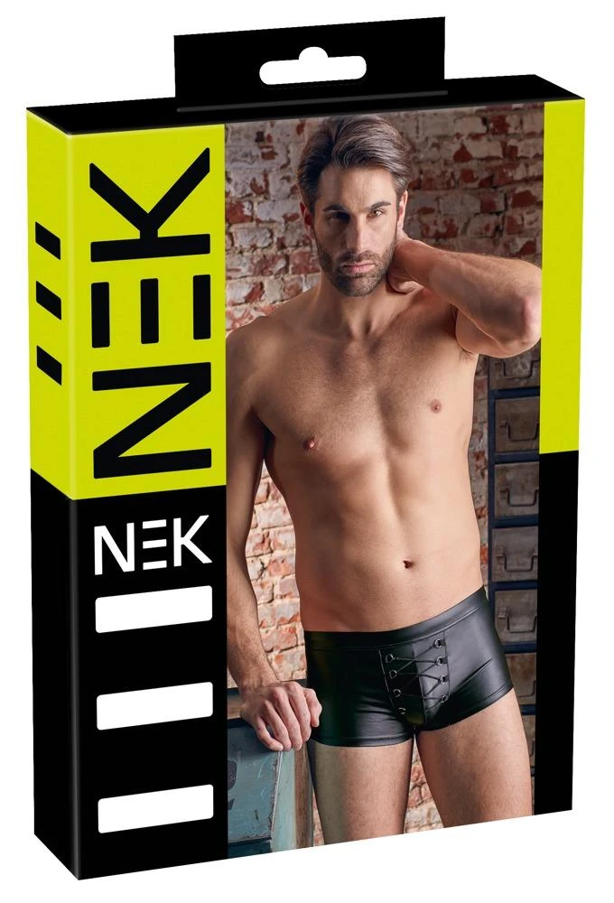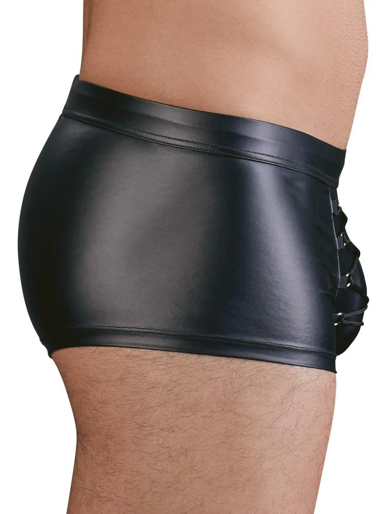 Striking male trend look! Classy, black pants in a stylish matte look with exciting lacing over the pouch. Fantastically elastic for a perfect fit and extremely comfortable to wear.