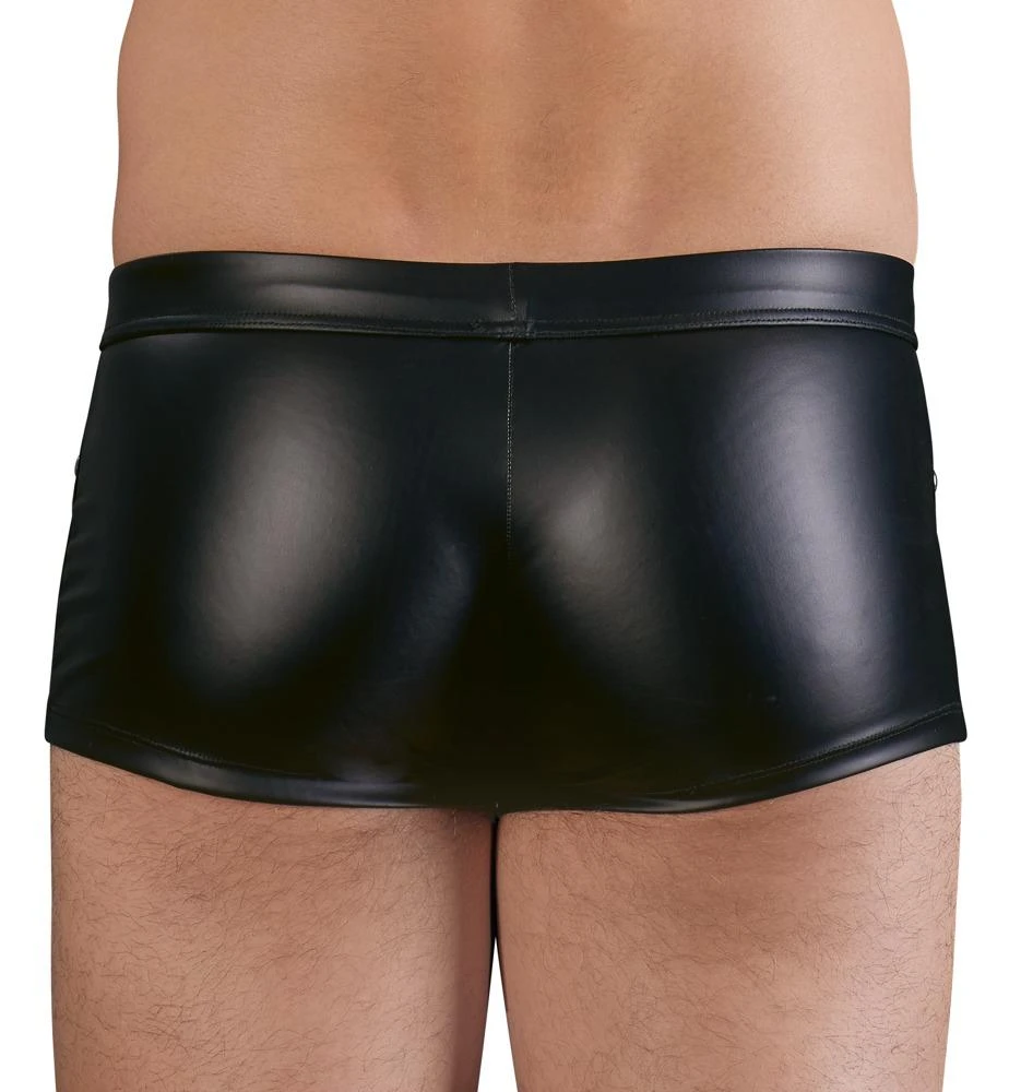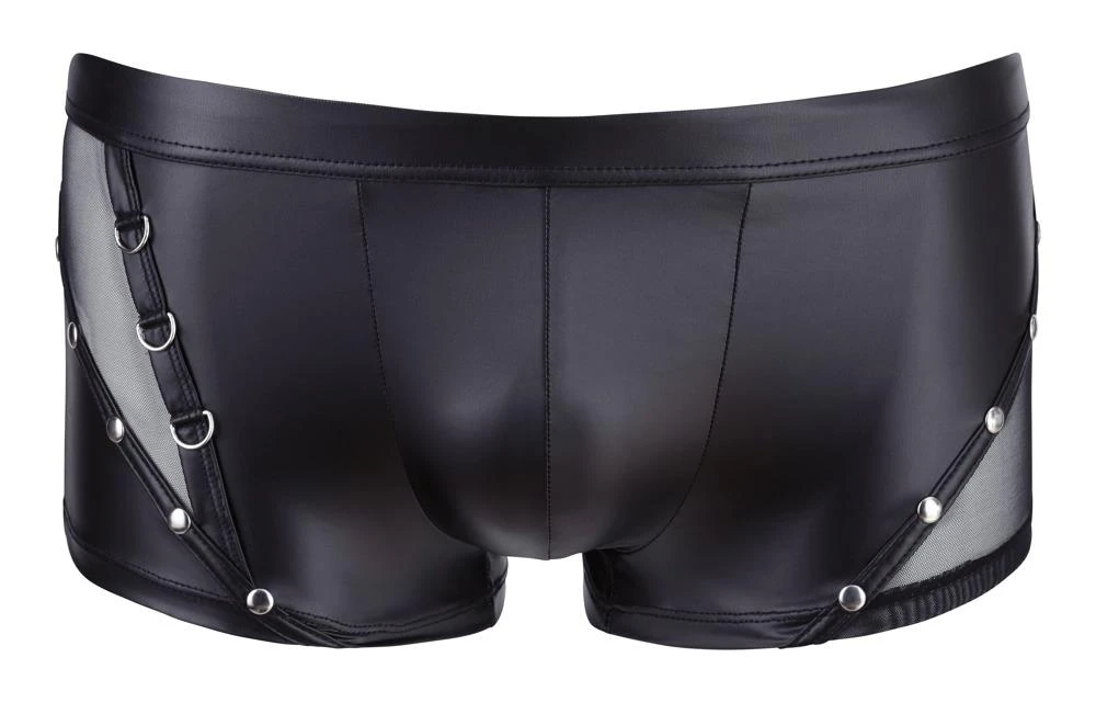 A masculine allrounder for every occasion! Fashionable pants in stretchy matte look that also fascinate with their wedge-shaped powernet inserts and press studs on the side seams. On one side, the pants also have another decorative strip of material with rings to complete the cool look.