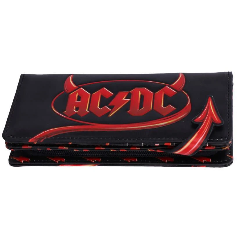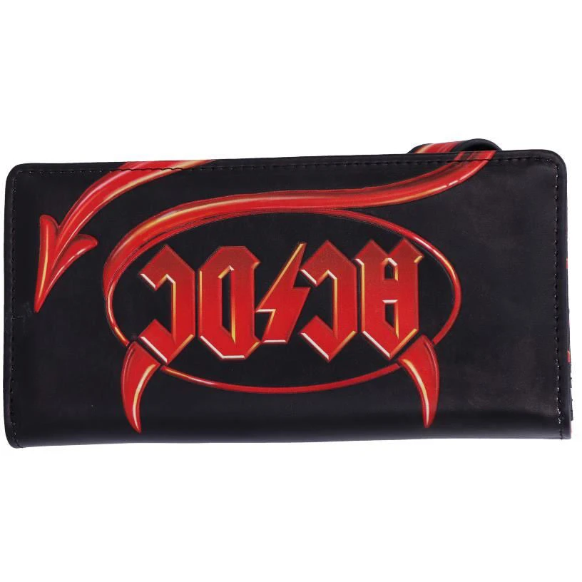 Proudly display your love of ACDC with this exclusive embossed purse! This purse is emblazoned with the vibrant red and yellow ACDC logo on a plain black background. Perfect for keeping your money safe when taking a ride down the Highway to Hell! All Hail ACDC!