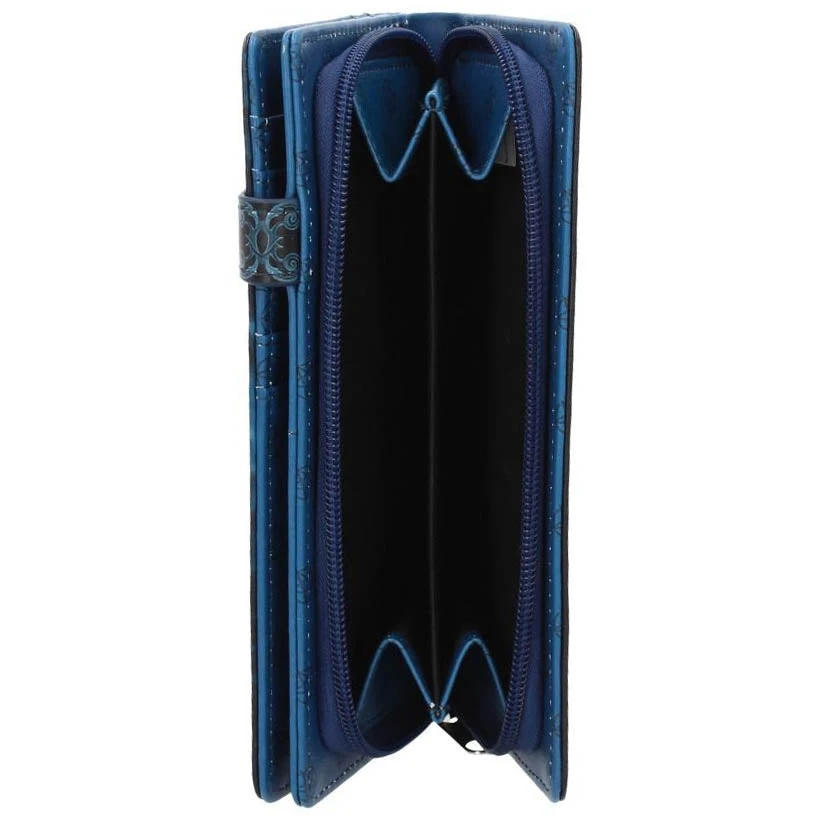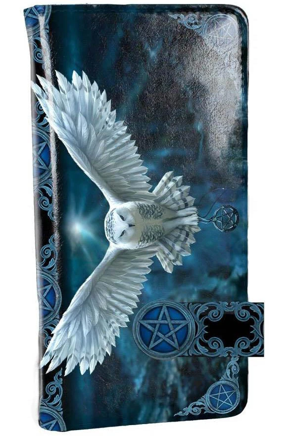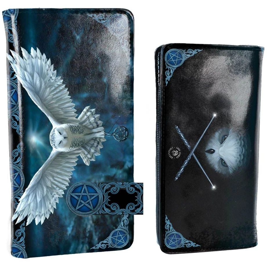 The majestic Awaken Your Magic artwork by Anne Stokes takes pride of place on the front of this embossed purse. A snowy owl swoops towards you, wings outstretched in full flight. The owl stares at you with an unwavering gaze, as a silver pentagram dangles from her feet. The embossed detailing creates a stunning 3D effect.
