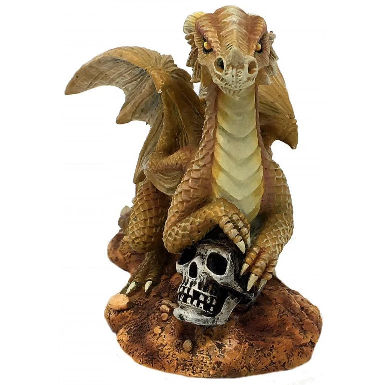 From the imagination of internationally renowned fantasy artist Anne Stokes comes the Age of Dragons range.This wee red sand wyrnling perches on rubble with a decorative skull resting between its legs. The dragonling is well camouflaged in its desert dwelling, anticipating its next meal. Cast in the finest resin before being carefully hand-painted, this mythic figurine will make the perfect addition to any dragon devotee’s collection.