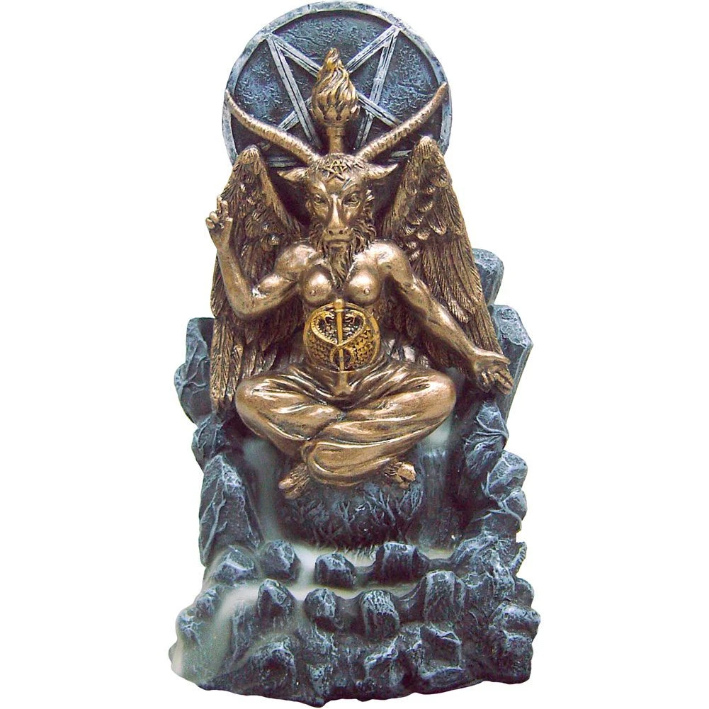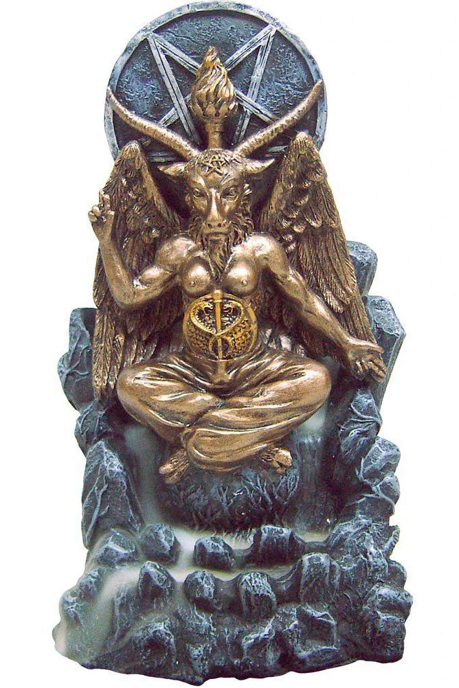This mystical Incense Burner is the perfect symbol of free-thinking heresy. Resting under a large pentagram sits the Baphomet, symbolising the total sum of the universe. Legs ending in cloven hooves, the staff of Asclepius rises from their crotch. Their right arm is raised in a magical blessing, while their left arm is stretched downwards and outwards invitingly. Cast in high-quality resin before being carefully hand-painted.