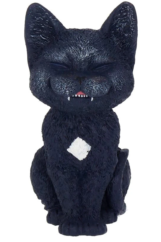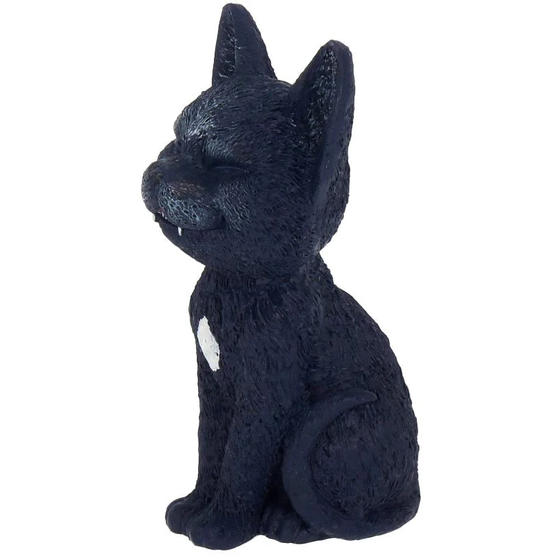 Cast in the finest resin before being expertly hand-painted, this little black cat has the widest grin! Sitting on his hindquarters, his tail curves up on his left side. Beneath his upper lip, a pair of small vampire fangs can be seen, looks like Dracula loves his feline friends as much as we do!