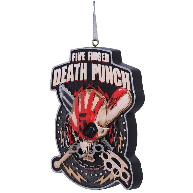 Raise your fists and salute the almighty Five Finger Death Punch with this officially licensed Christmas Decoration, exclusive to Nemesis Now. Based on their mascot, Knucklehead sat above a bloody baseball bat and serrated blade; this piece is guaranteed to strike fear into the hearts of all your enemies! Cast in high-quality resin before being carefully hand-painted, this ideal piece of merchandise is the perfect addition to any Death Punch maniac’s Christmas collection.