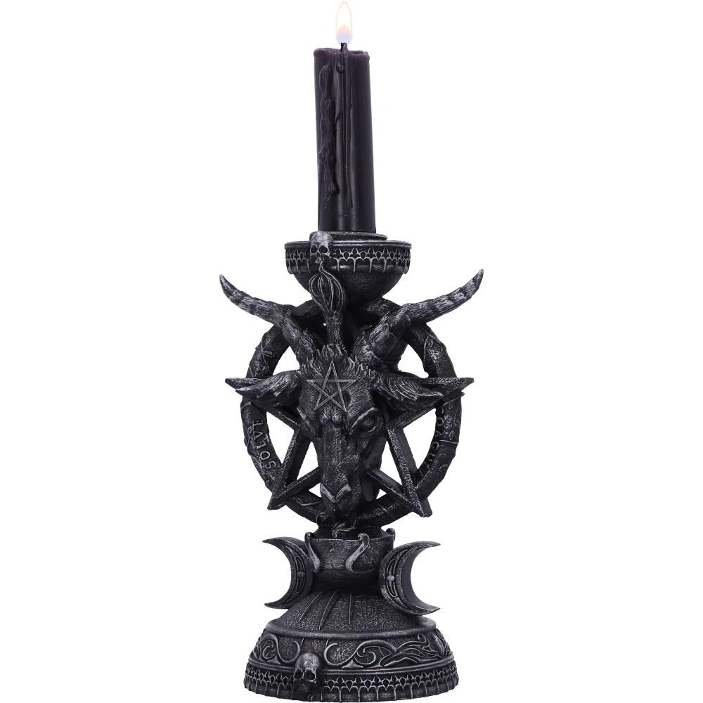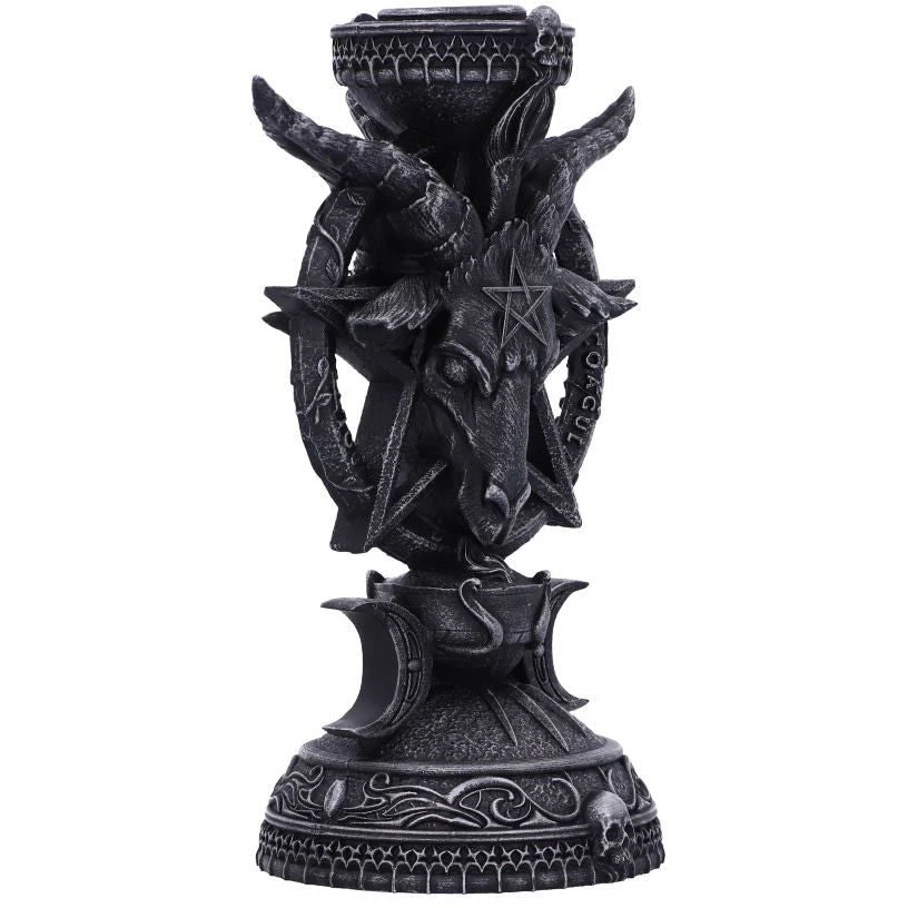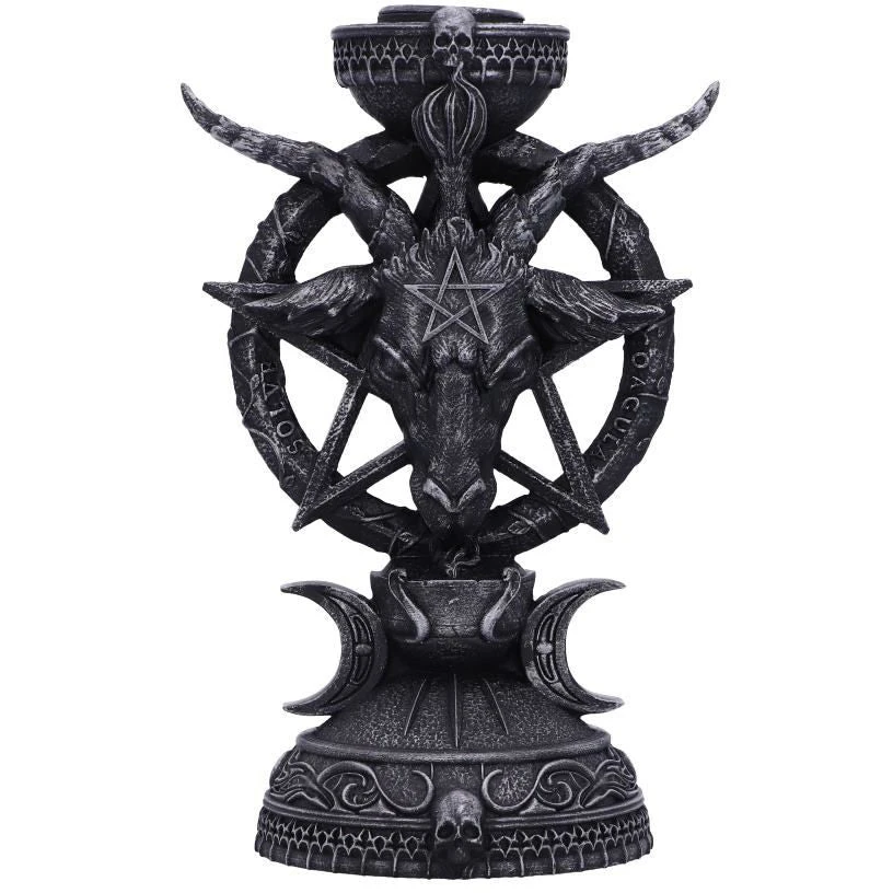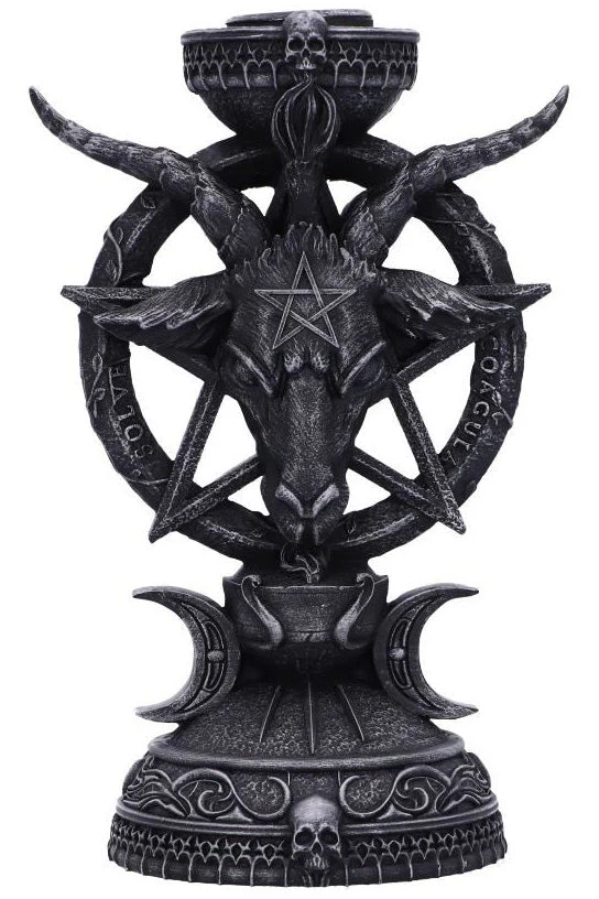 Ontop of a pentagram forms the head of a triple-horned Sabbatic Goat. Above his head sits a small bowl, which is the perfect fit for your favorite scented candlesticks. Whereas at the base of the holder, a variety of gothic symbols and imagery can be seen, adding to the satanic features of this beautiful piece. Cast in the finest resin before being expertly hand-painted this is a must-have product for any gothic or alternative store.