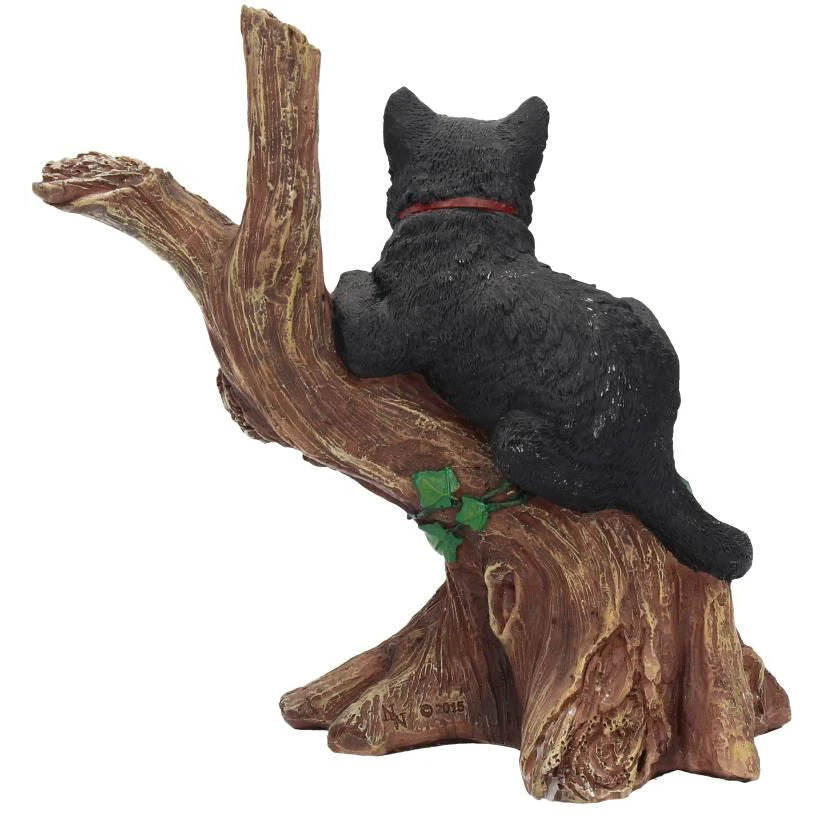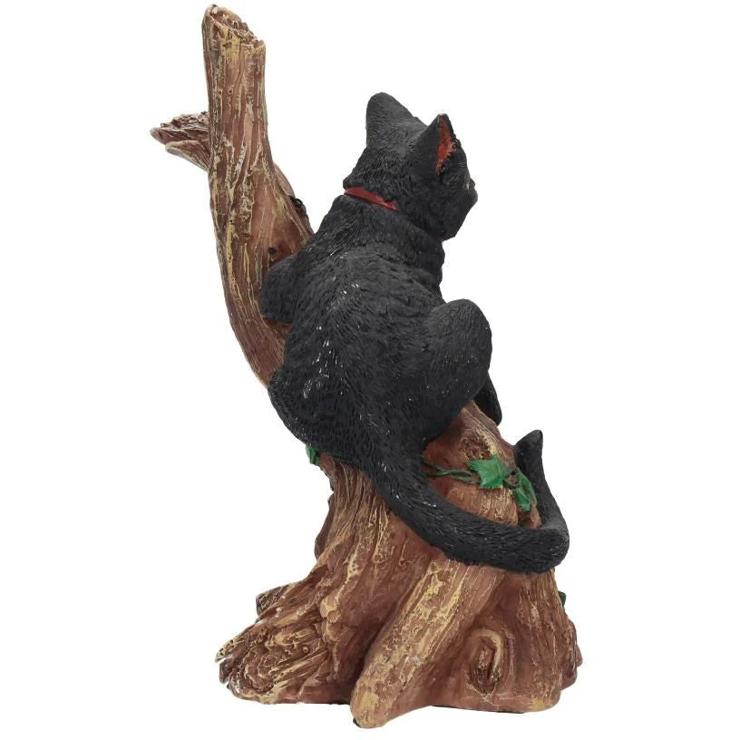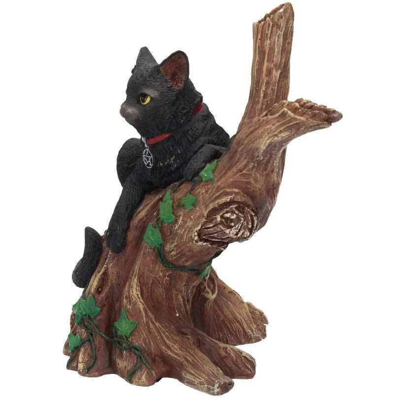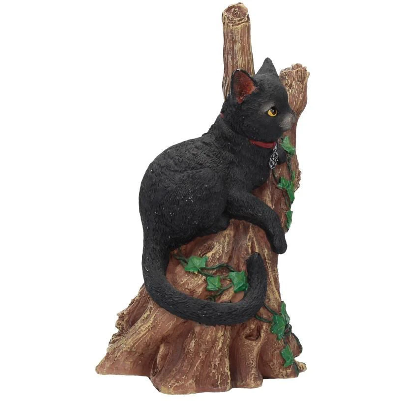 This charming cat is cast in high-quality resin before being painstakingly hand-painted. A tree is the perfect place for Onyx to relax, even though it is covered with ivy. A silver pentagram medallion hangs from their red collar. A perfect gift for the charming witch in your life.
