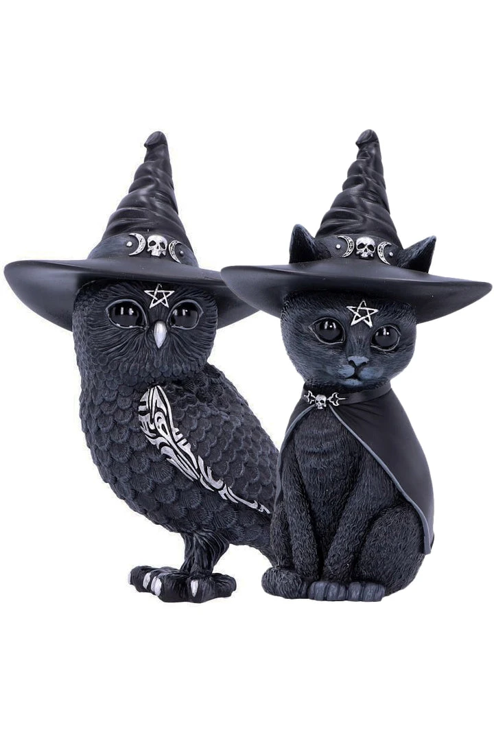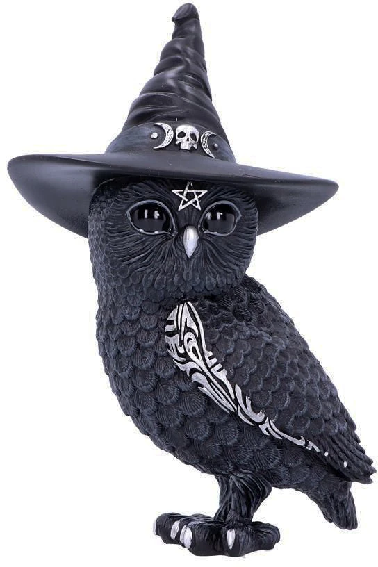 Owlocen. This strange creature is the union of good and evil. As you look into its black eyes you notice that all is not as it seems, darkness resides within. The owl appears to be channelling the spirit of the witch, encapsulated by a large pointed hat and silver markings cascading down its wings. The cat is decorated in ornate silver detailing and occult symbology. Cast in high-quality resin and carefully hand-painted this figurine is likely to be the cutest occultist you’ve ever seen. Alongside Owlocen, the Witch Owl, this amalgamation of horror and delight will make the perfect addition to any feline fanatic’s collection.