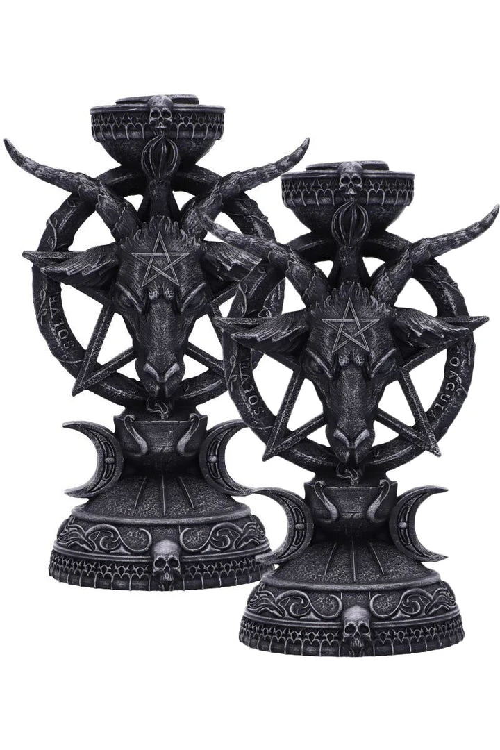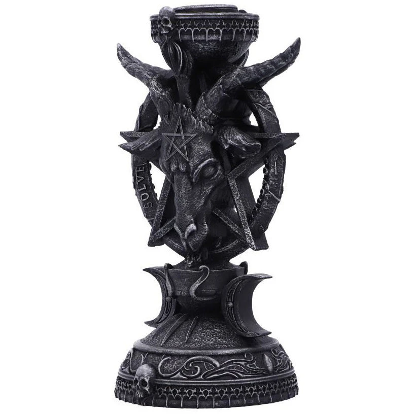 On top of a pentagram forms the head of a triple-horned Sabbatic Goat. Above his head sits a small bowl, which is the perfect fit for your favorite scented candlesticks. Whereas at the base of the holder, a variety of gothic symbols and imagery can be seen, adding to the satanic features of this beautiful piece. Cast in the finest resin before being expertly hand-painted this is a must-have product for any gothic or alternative store.